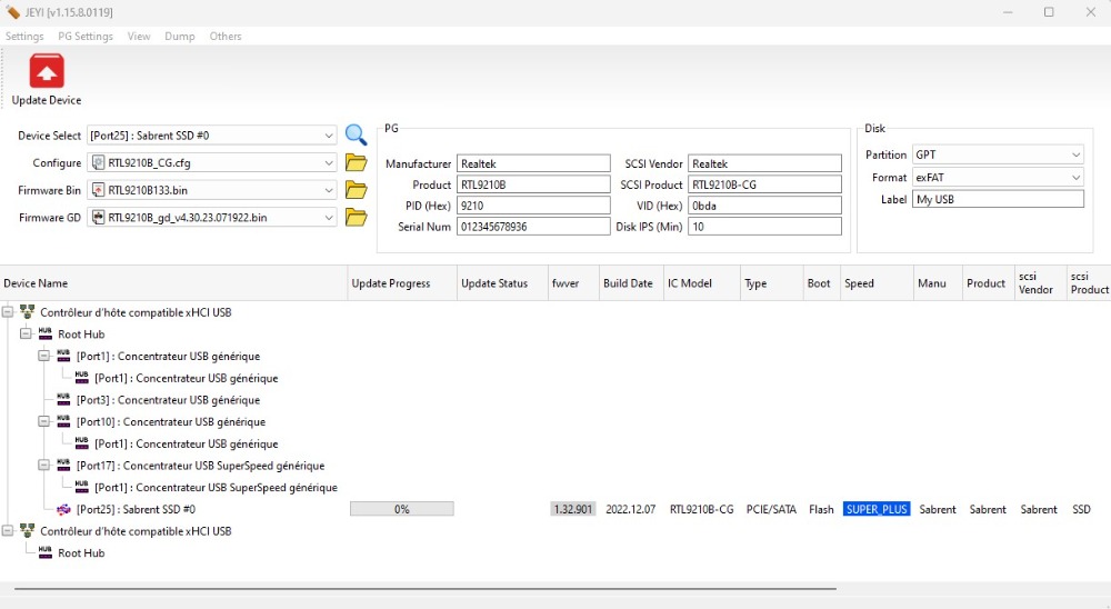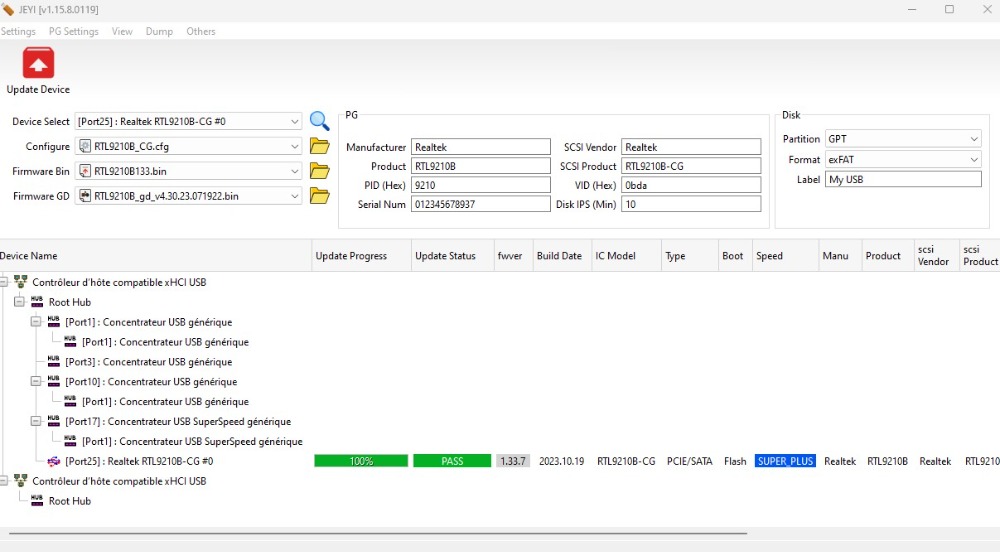 Boot Mode : FlashFW Ver : 1.32.901FW Build Date : 2022.12.07IC Pkg Type : PCIEUUID : n/a Disconn_ForceUSB2 : 0x00