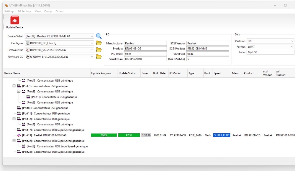 I tried downloading v1.32.16.010923 and tried putting the RTL9210B_v1.32.16.010923.bin and UTNVME_B_v1.29.391.072822.bin that uploaded into UTHSB_MPtool_Lite_1.14.8.0610 installer along with configure file RTL9210_Lite_10.cfg but for some reason it won't even try flash my device.