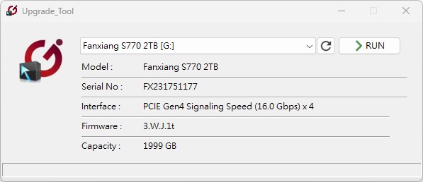 Fanxiang SSD S770 firmware Version 3.W.J.1t