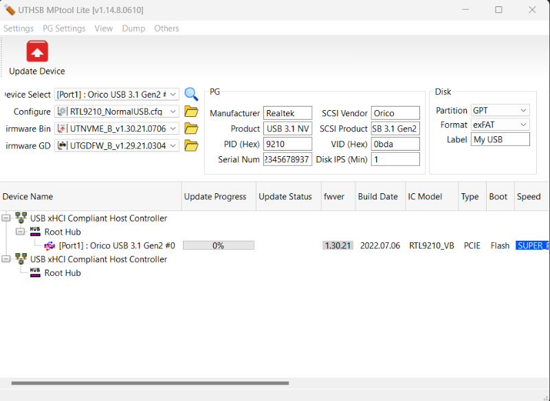 NVME USB drives Realtek RTL9210/RTL9220 Firmware Version 1.xx