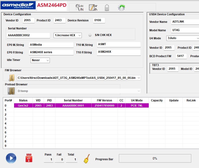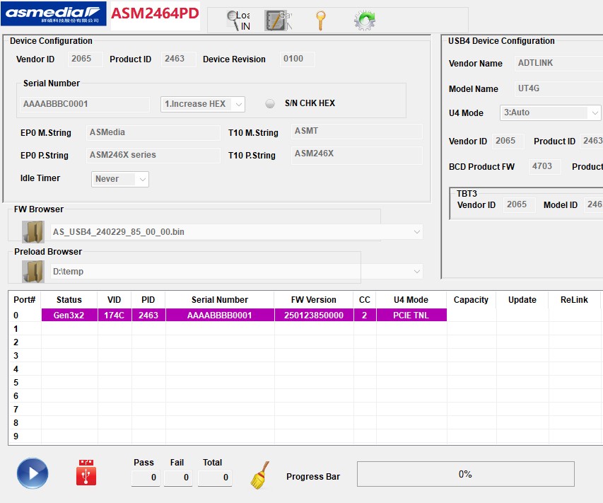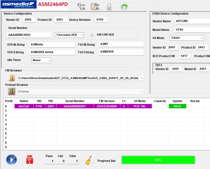 Asmedia ASM2464 NVME/USB 4.x Controller Firmware Version 250417_85_00_00