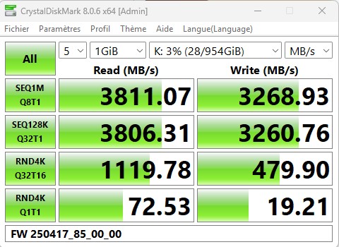 Asus Z890 ProArt, Intel Cpu Core Ultra 7 265K, Memoires 32Go Corsair DDR5 (6000Mhz CL30), Water-cooling Thermaright, nVidia Geforce RTX4060, Alimentation Gigabyte 850W, Samsung SSD 990 Pro, SSD9100 Pro, Steelserie Pro , Souris Razer, Boitier HUMMER, HP Steelserie, Free Fibre Ultra (8Go/8Go), Lan 10Gb, Cable CAT8/7, Switch 10/5/2.5Gbps, Casque Philips Fedelis.