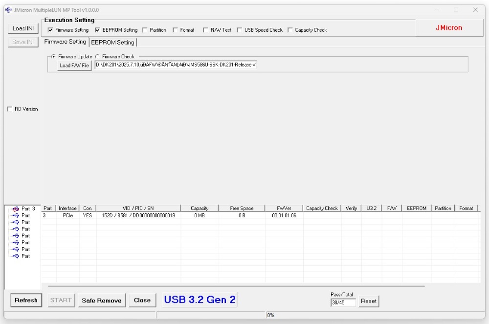 Jmicron JMS-586 NVMe/USB 3.2 Controller firmware Version 10.01.00.01
