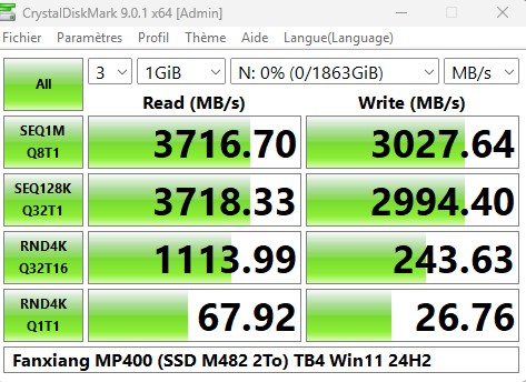 Asus Z890 ProArt, Intel Cpu Core Ultra 7 265K, Memoires 32Go Corsair DDR5 (6000Mhz CL30), Water-cooling Thermaright, nVidia Geforce RTX4060, Alimentation Gigabyte 850W, Samsung SSD 990 Pro, SSD9100 Pro, Steelserie Pro , Souris Razer, Boitier HUMMER, HP Steelserie, Free Fibre Ultra (8Go/8Go), Lan 10Gb, Cable CAT8/7, Switch 10/5/2.5Gbps, Casque Philips Fedelis.