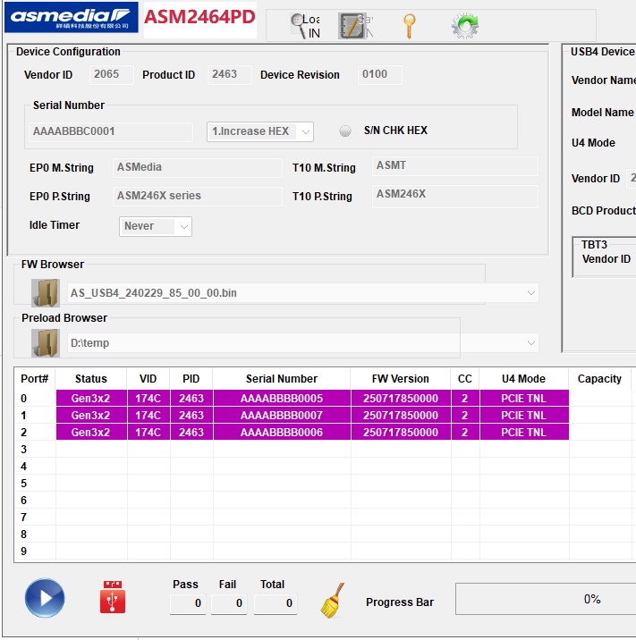 Asmedia ASM2464 NVME/USB 4.x Controller Firmware Version 250717_85_00_00
