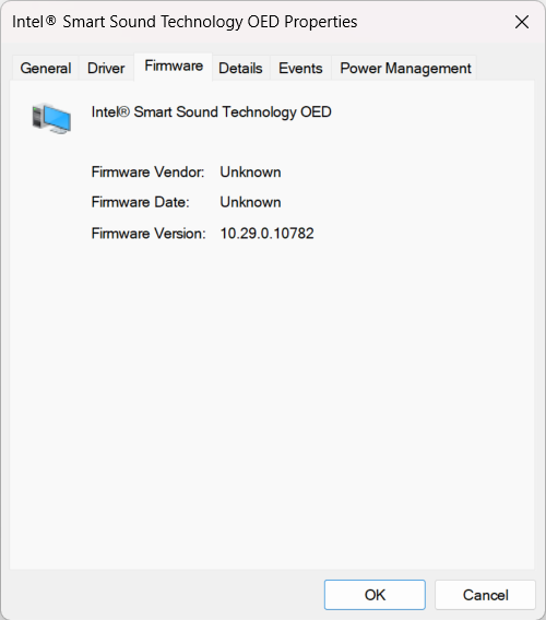 Intel® Smart Sound Technology Detection Verification: 01.00.3178.00, DriverVer = 11/03/2023