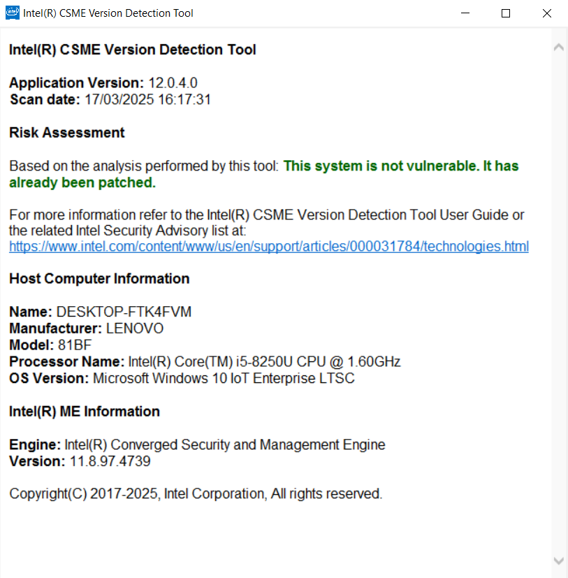 Intel® Converged Security and Management Engine Version Detection Tool 12.0.4 10/02/2025