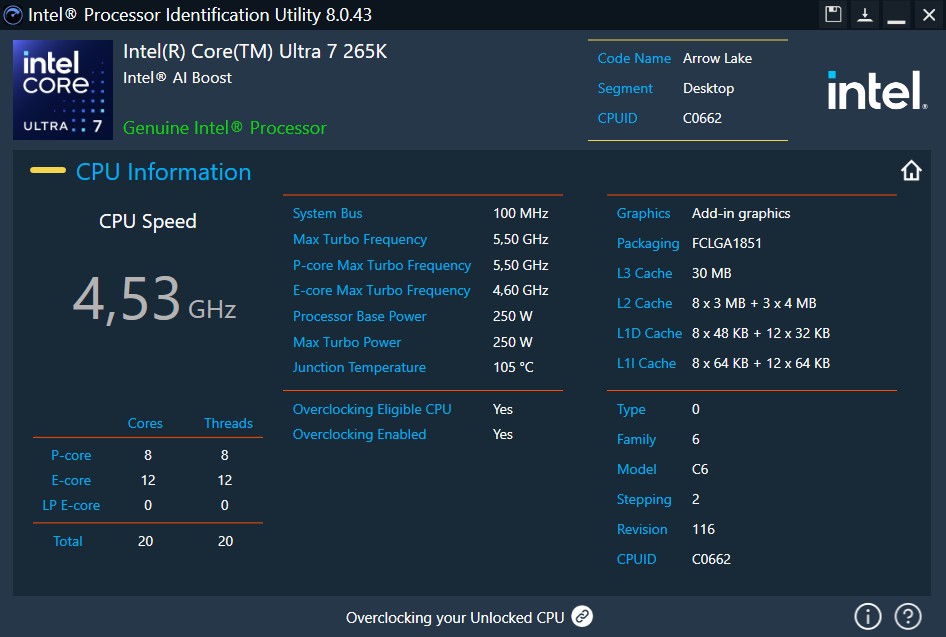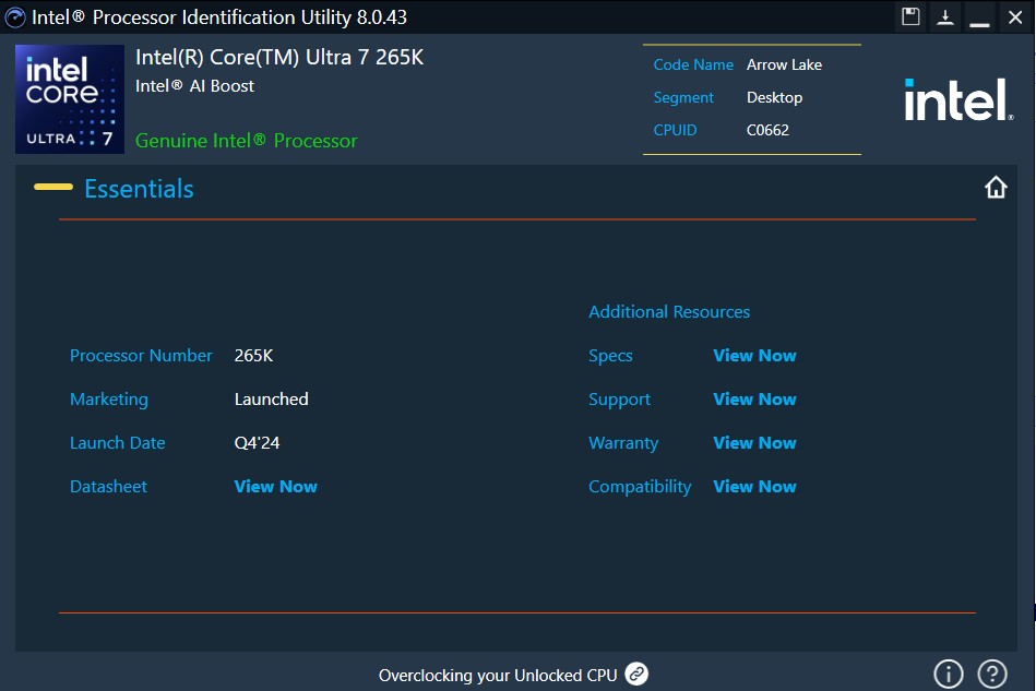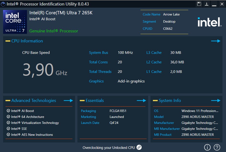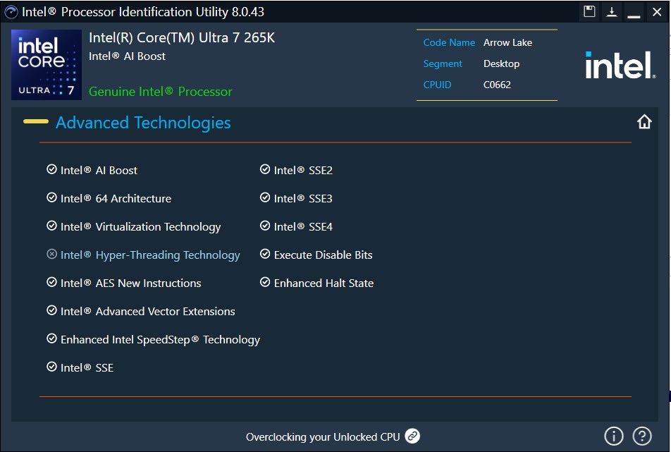 Processor Identification Utility allows you to verify your CPU and also confirm or not the activation of certain functions, check the frequency, ....