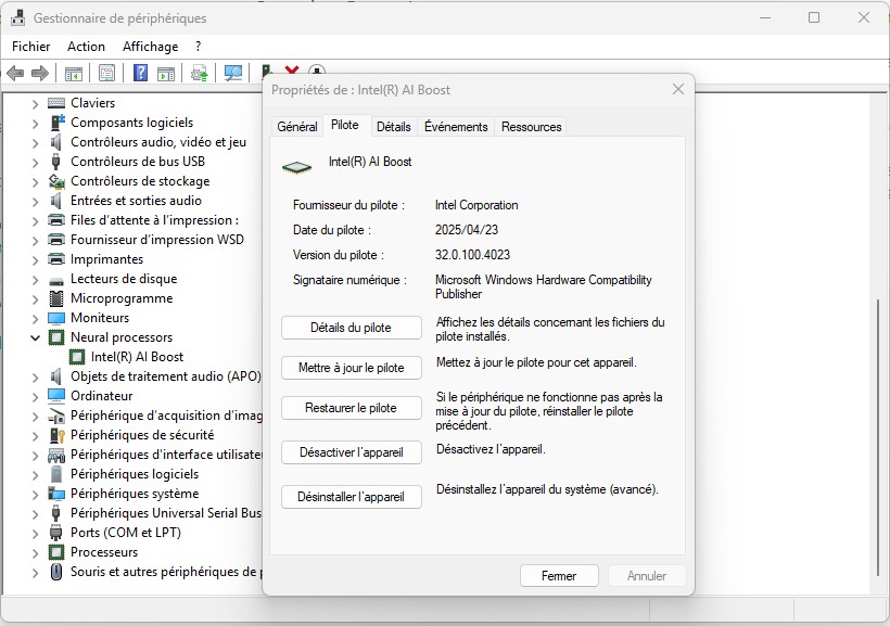 Intel NPU (AI Boost) Drivers Version 32.0.100.4023
