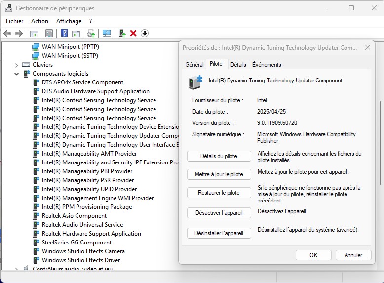 Date & Version du drivers: