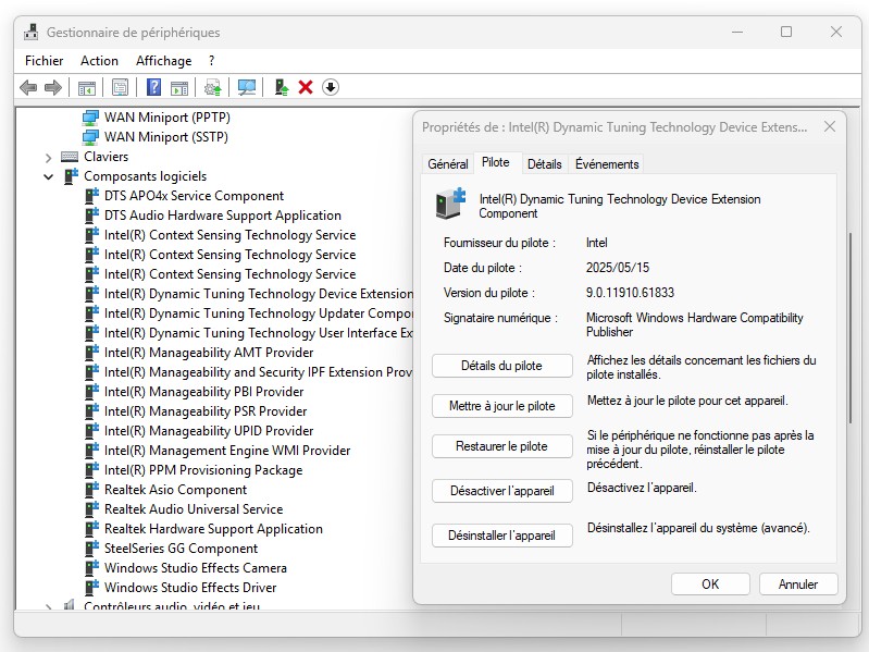 Intel Dynamic Tuning Technology (DTT) Version 9.0.11910.61833