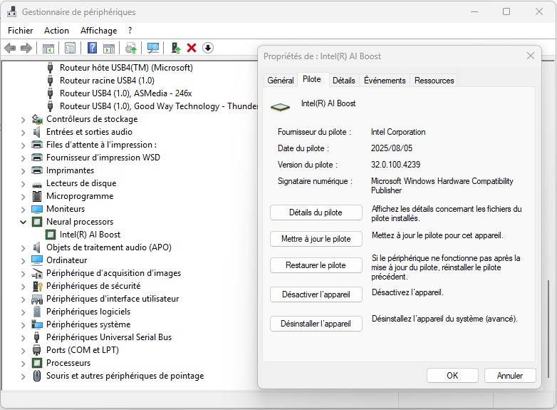 Intel NPU (AI Boost) Drivers Version 32.0.100.4239