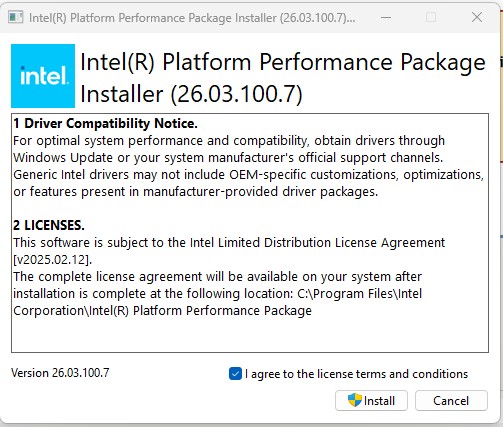 Re: Intel Plateform Performance Package Version 26.03.100.7