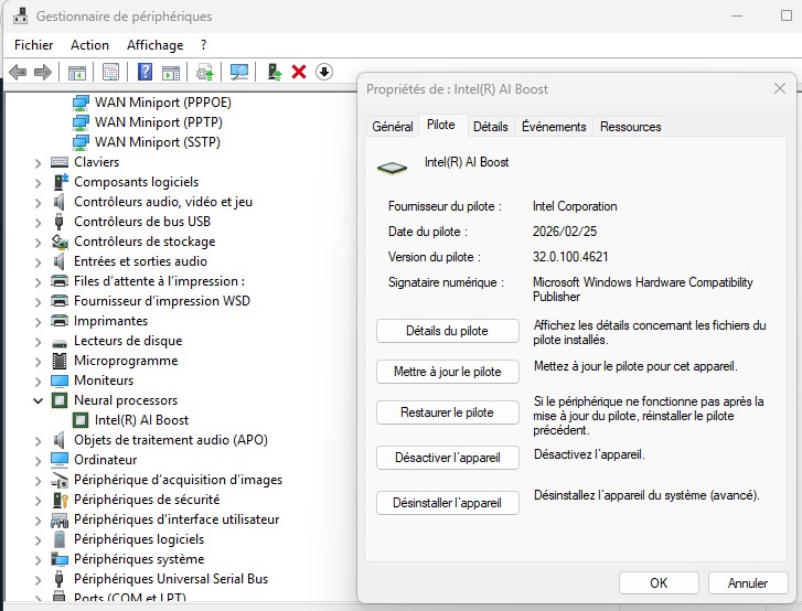Intel NPU (AI Boost) Drivers Version 32.0.100.4621