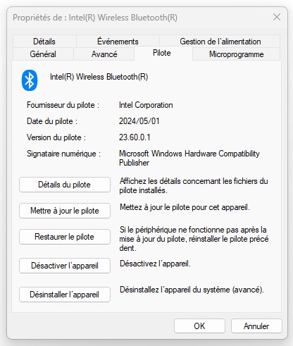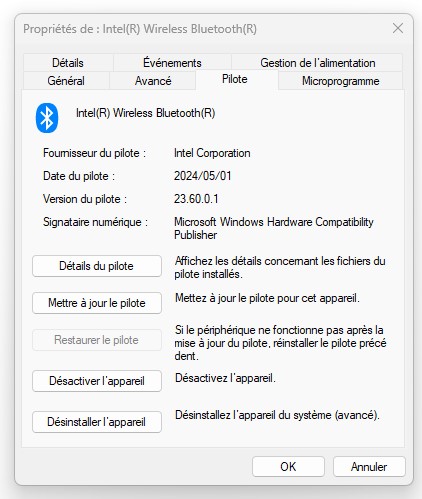 Intel PROSET/Wireless Wifi/Bluetooth software Version 23.60.0.1 WHQL Complet