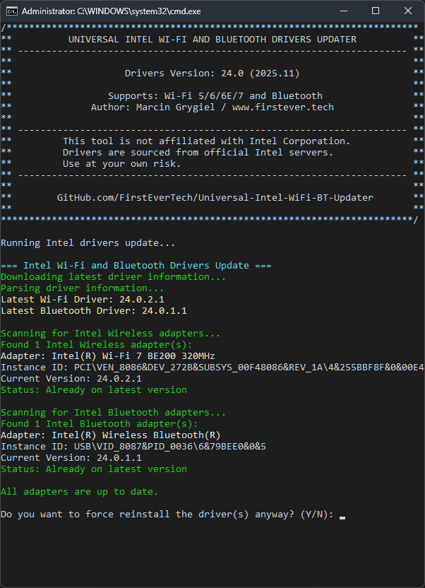 I’m presenting my new tool that simplify updating Intel Wi-Fi/Bluetooth drivers.