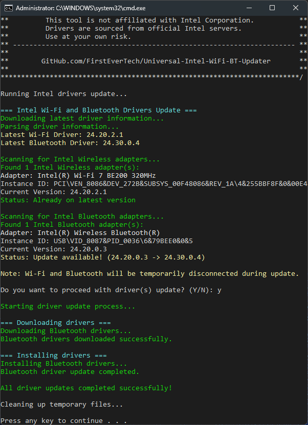 Intel® Wireless Bluetooth Drivers v24.xxx