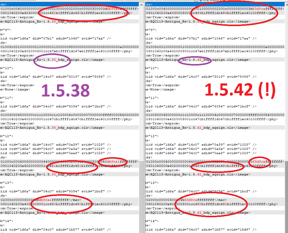 We can see that for almost all devices, MAC region has 63d8ca value instead of db9ca1 included in all previous firmwares.
