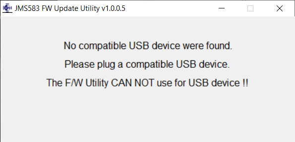 Probably that message gives it to me because I now have a more updated firmware (20.05.00.01) and therefore FW jms583_FWUpdate_Utility_0209 cannot detect it ... boh