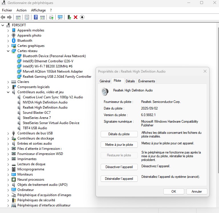 Asus Z890 ProArt, Intel Cpu Core Ultra 7 265K, Memoires 32Go Corsair DDR5 (6000Mhz CL30), Water-cooling Thermaright, nVidia Geforce RTX4060, Alimentation Gigabyte 850W, Samsung SSD 990 Pro, SSD9100 Pro, Steelserie Pro , Souris Razer, Boitier HUMMER, HP Steelserie, Free Fibre Ultra (8Go/8Go), Lan 10Gb, Cable CAT8/7, Switch 10/5/2.5Gbps, Casque Philips Fedelis.