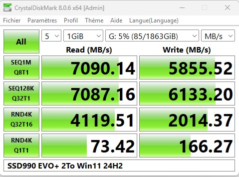 Asus Z890 ProArt, Intel Cpu Core Ultra 7 265K, Memoires 32Go Corsair DDR5 (6000Mhz CL30), Water-cooling Thermaright, nVidia Geforce RTX4060, Alimentation Gigabyte 850W, Samsung SSD 990 Pro, SSD9100 Pro, Steelserie Pro , Souris Razer, Boitier HUMMER, HP Steelserie, Free Fibre Ultra (8Go/8Go), Lan 10Gb, Cable CAT8/7, Switch 10/5/2.5Gbps, Casque Philips Fedelis.