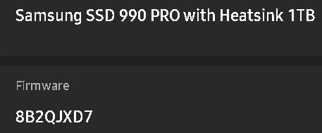 Re: Samsung 990 Pro SSD Firmware 8B2QJXD7
