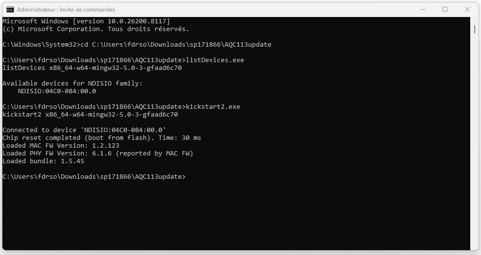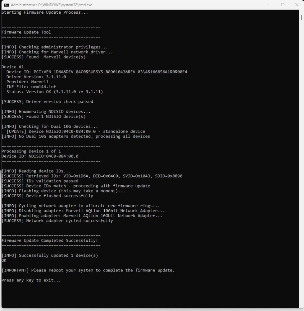 Marvell/Aquantia AQC113CS (10Gbps) Firmware Version 1.5.45