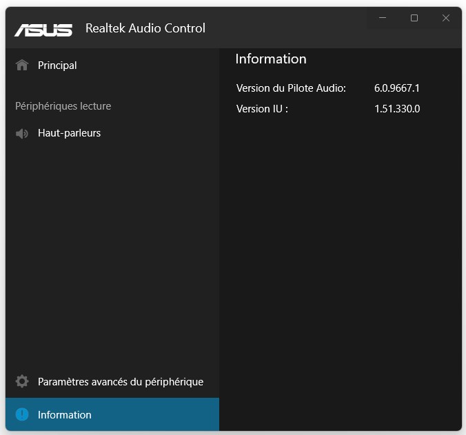 -the actual 6.0.9667.1 Asus driver version is found in the \Audio\88E7\ folder along with Realtek Audio Control UWP app v1.51.327.0