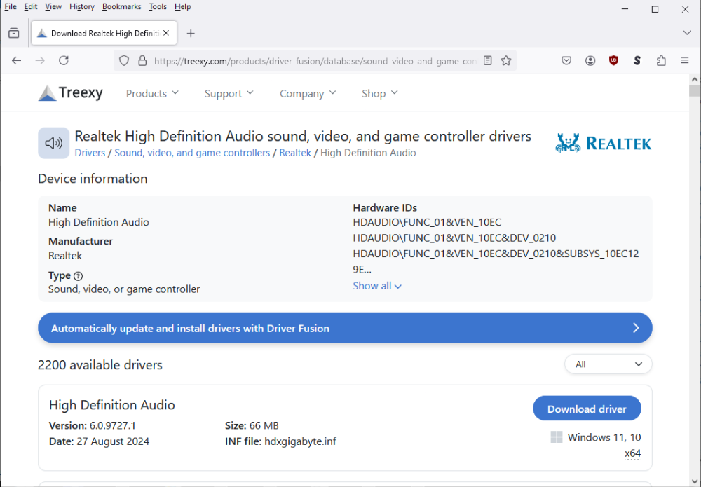 il y a 1 an 3 mois - il y a 1 an 2 moisedit 7/6 - speaking of 6.0.9689.1, the treexy.com page about Realtek High Definition Audio recently claims to have a v6.0.9689.1 hdxgigabyte.inf codec driver thru its Driver Fusion app